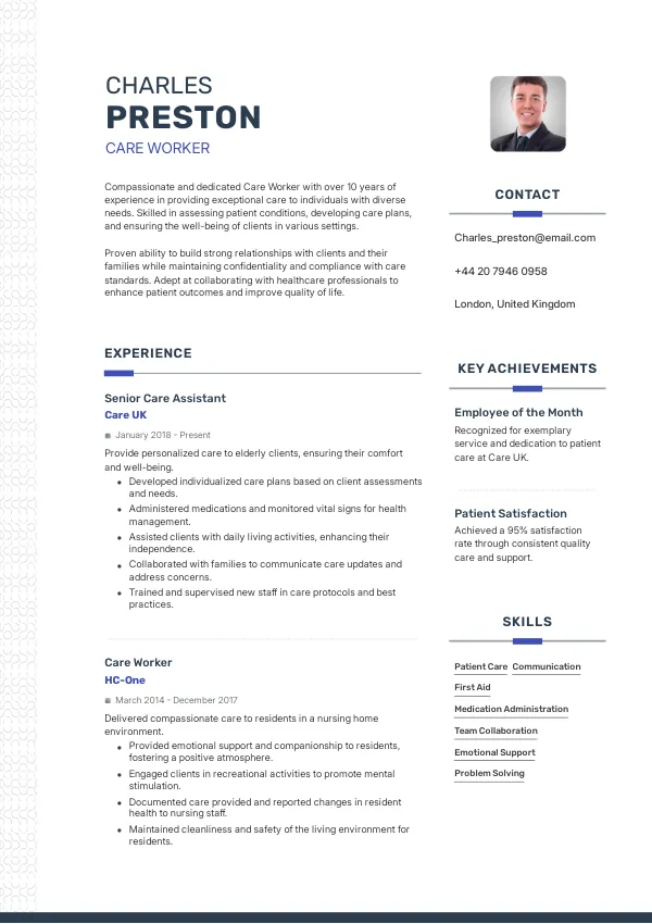 - As a Care Worker in the United Kingdom, your resume will be tailored to highlight your unique contributions to patient care and compliance with UK standards.