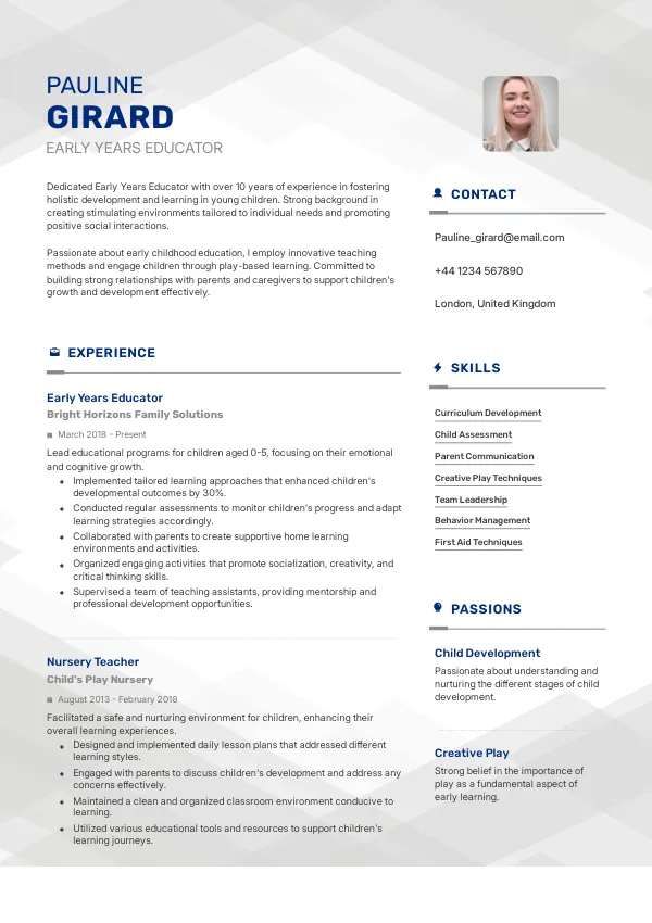 By engineering your resume specifically for Early Years Educator roles in the United Kingdom, you can build a strong foundation for your career in this rewarding field.
