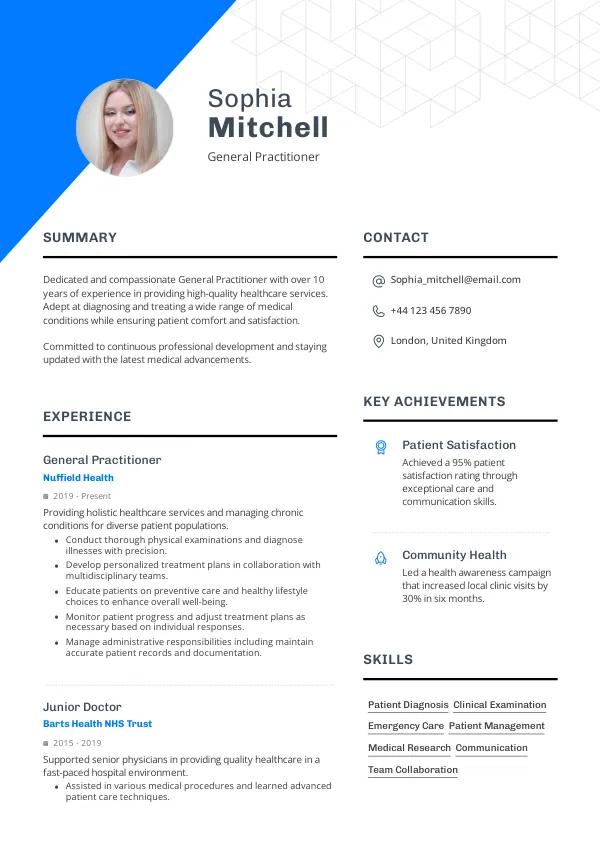 - Tailored resume examples that reflect the expectations of General Practitioners in the United Kingdom.