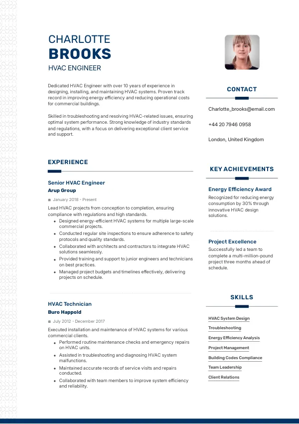 - As an HVAC Engineer in the United Kingdom, your resume must highlight your experience with local building codes and energy efficiency standards.