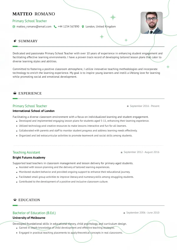 - Insights into what makes a successful Primary School Teacher resume in the United Kingdom.