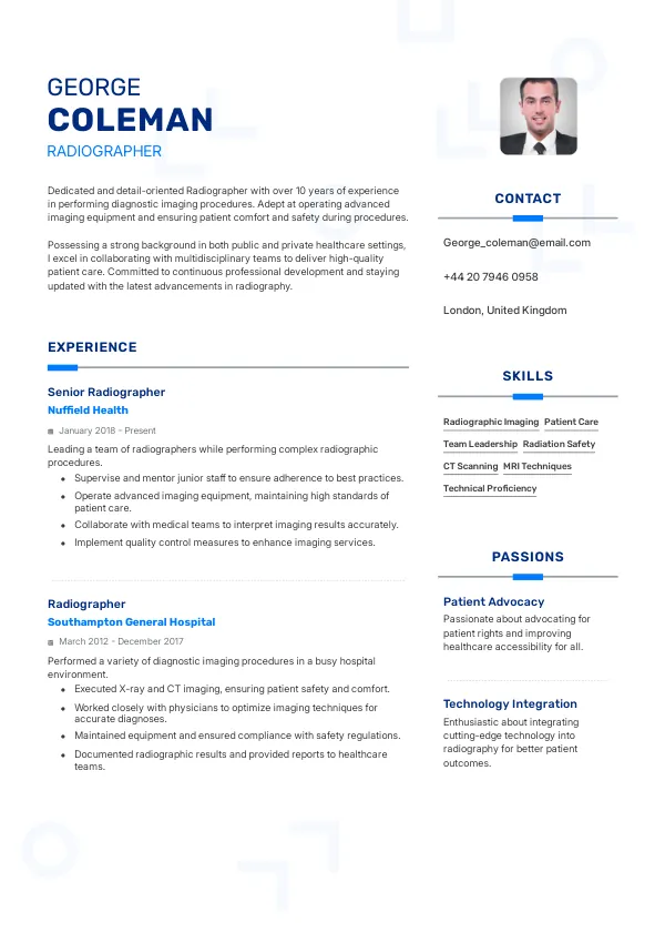 - As a Radiographer in the United Kingdom, your resume must effectively communicate your unique skills and experiences that set you apart from other candidates.