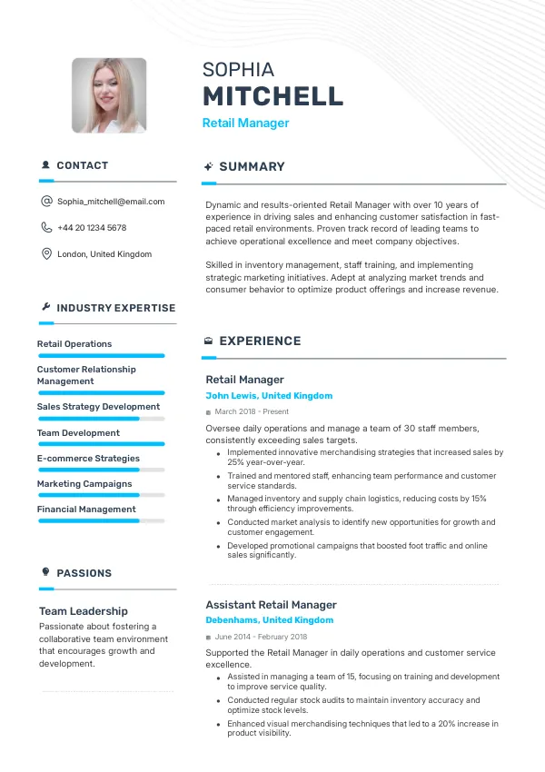 - We emphasize your unique contributions to previous employers in the UK retail sector.